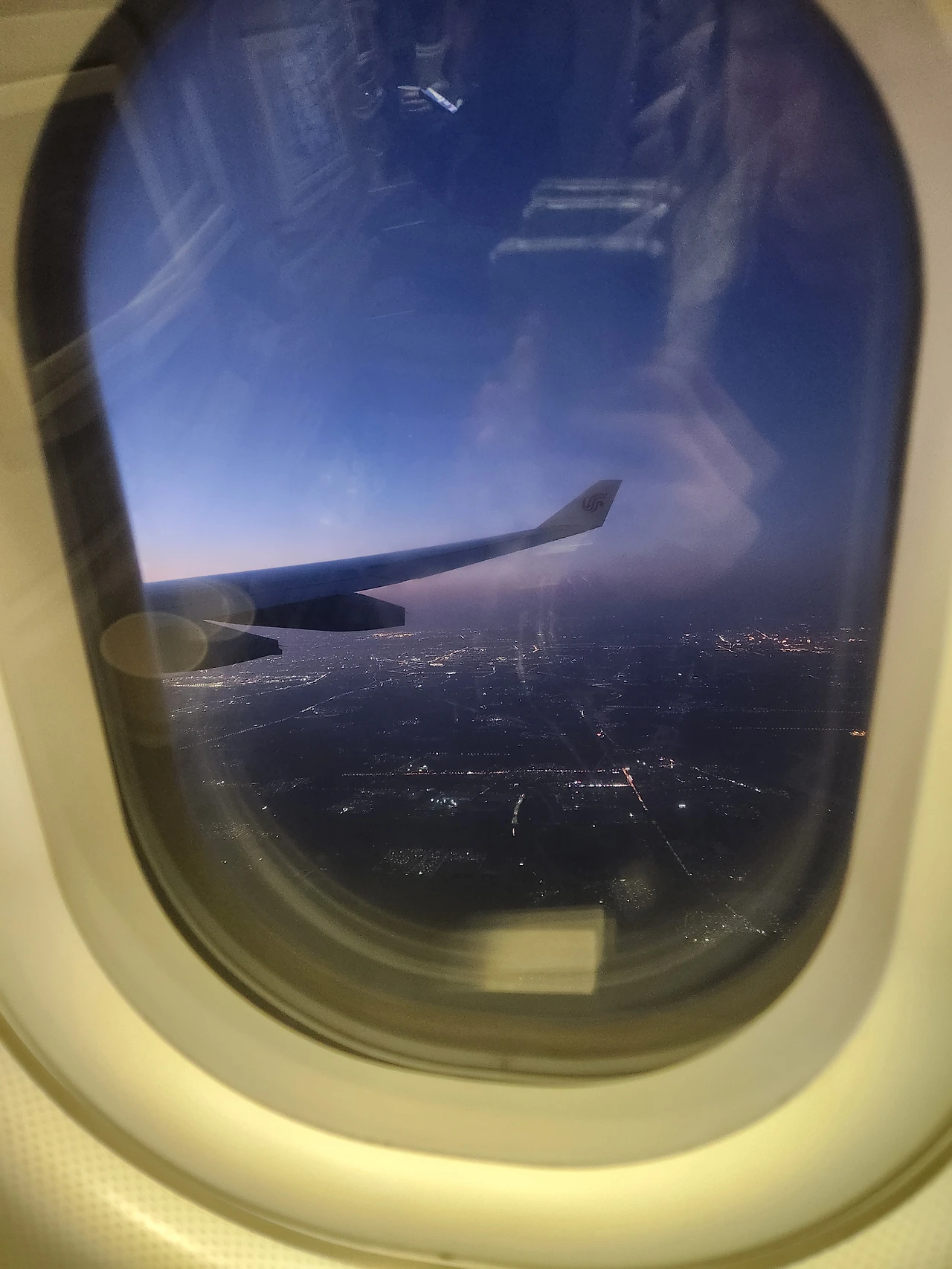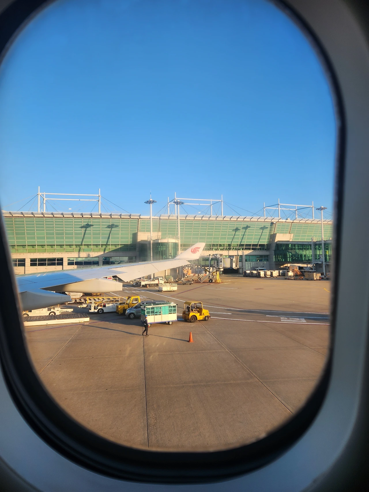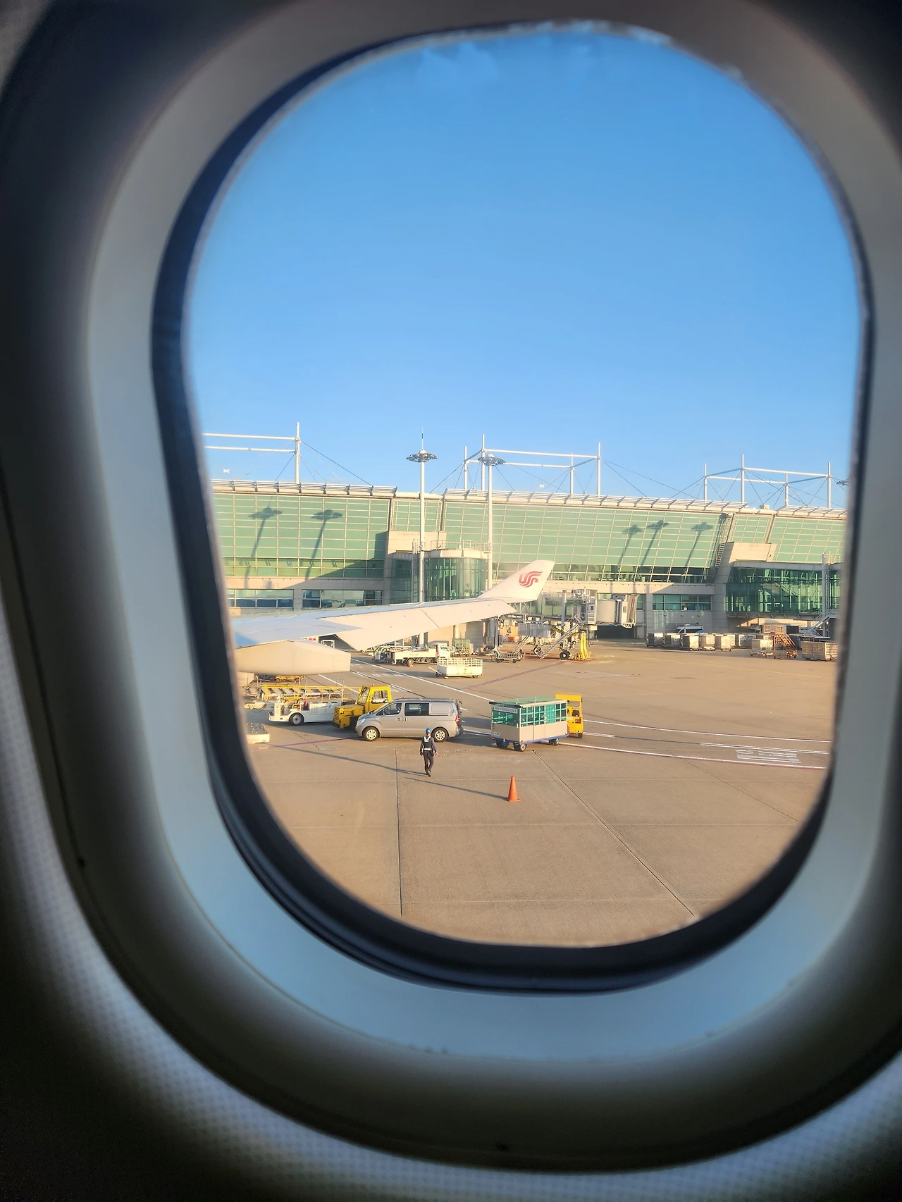 비행기 밖에 구경하는 걸 좋아해서 항상 window seat을 고수한다. 장거리여도 창가좌석이 좋다. 그리고 창문에 기대서 자는 것도 좀 더 편하다. 날개에 전망이 방해받지 않는 좌석으로 잘 예매한 것 같다! 마지막으로 연락 끝내고 이륙할 준비를 했다. 비행기 배경음은 중국느낌의 instrumental music 이었다. 왠지 기분 좋다. 다른 항공사였으면 classical 한걸 틀었을텐데 말이다. 그리고 외항사 비행치고 한국사람들이 엄청 많았다.