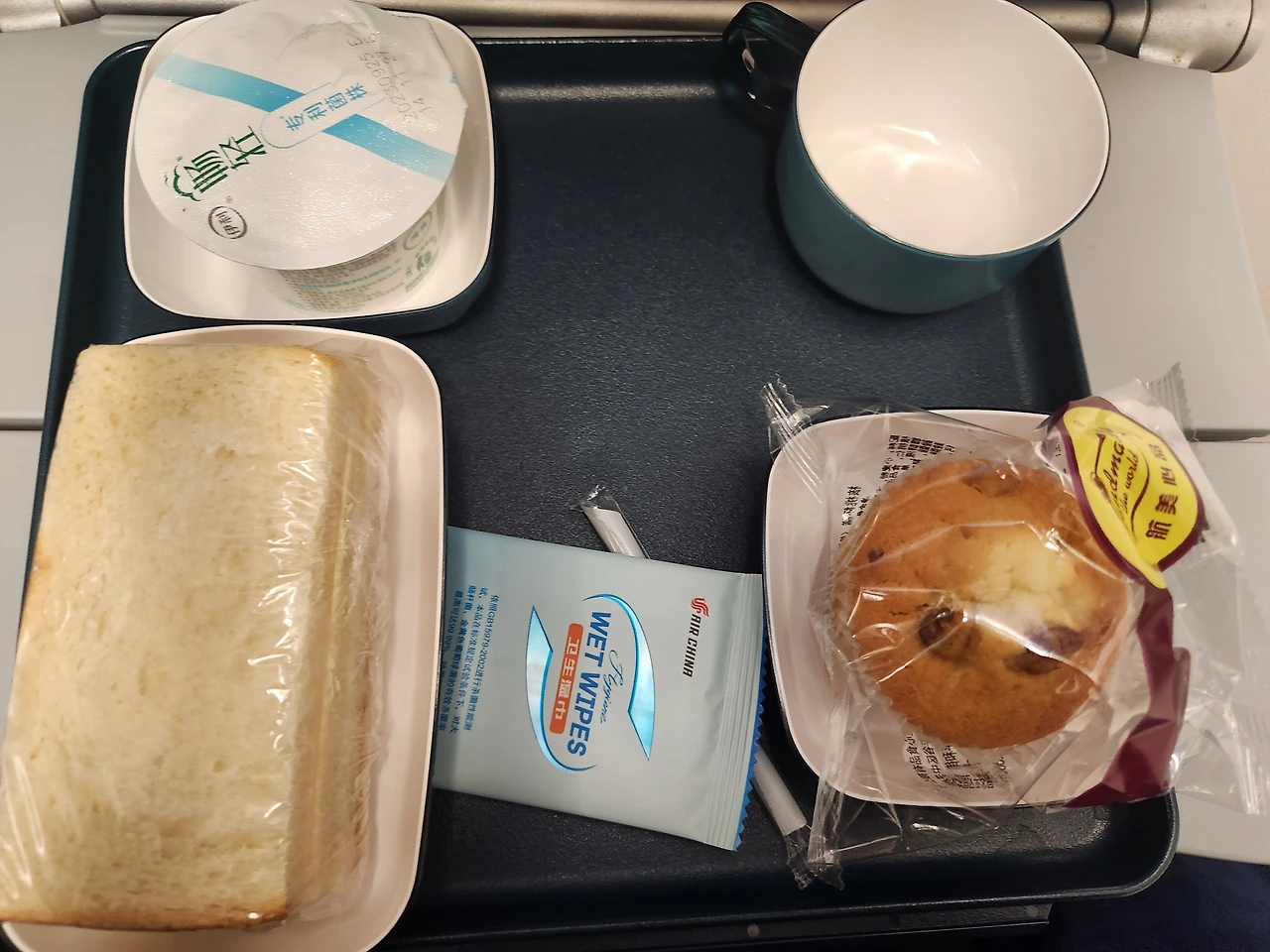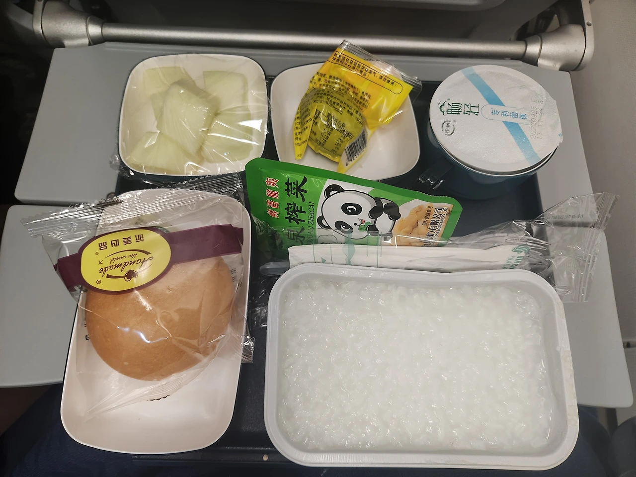 중국어로만 승무원이 얘기해서 어떤 옵션이 있는지 잘 이해를 못 하고 있었는데 rice?라고 해서 오키오키 하니 이걸 받았다. 보니까 이거 아니면 오믈렛에 감자던데 이 죽은... 저 포장지로 준 짠차이랑 계란이랑 먹으라고 준거 같은데 손도 대지 못했다. 대신 빵과 과일, 요거트는 먹었다. 이러고 도착하니 수화물 찾을 때 너무 배가 고팠다.