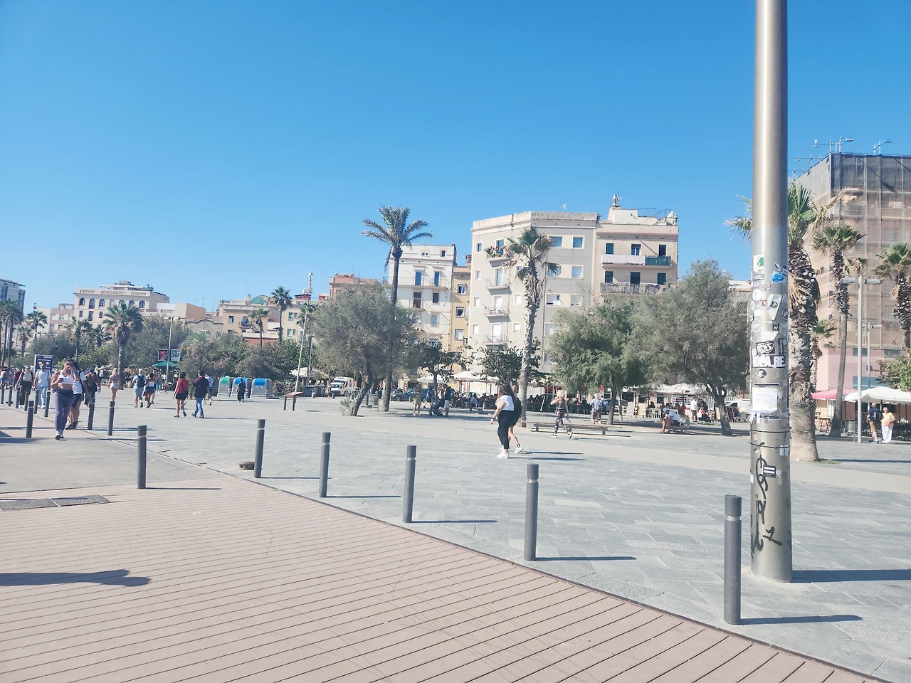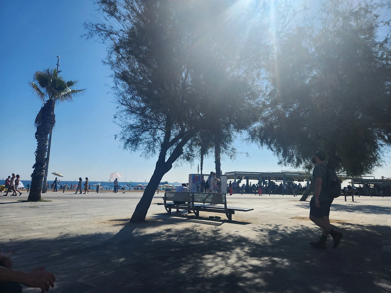 햇빛이 강렬했던 바르셀로네타 해변길. 많은 서양인들은 아침부터 런닝을 했다. 그리고 아침부터 바에서 커피나 술을 마시고 있었다.