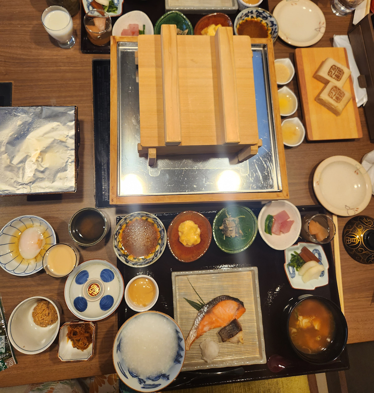 조식은 우리 입맛에는 어제 먹은 저녁 가이세키보다 훨씬 맛있고 즐거운 식사였다. 직접 생선도 구워먹고 편백찜도 먹고 참치회와 계란요리도 맛있었다.