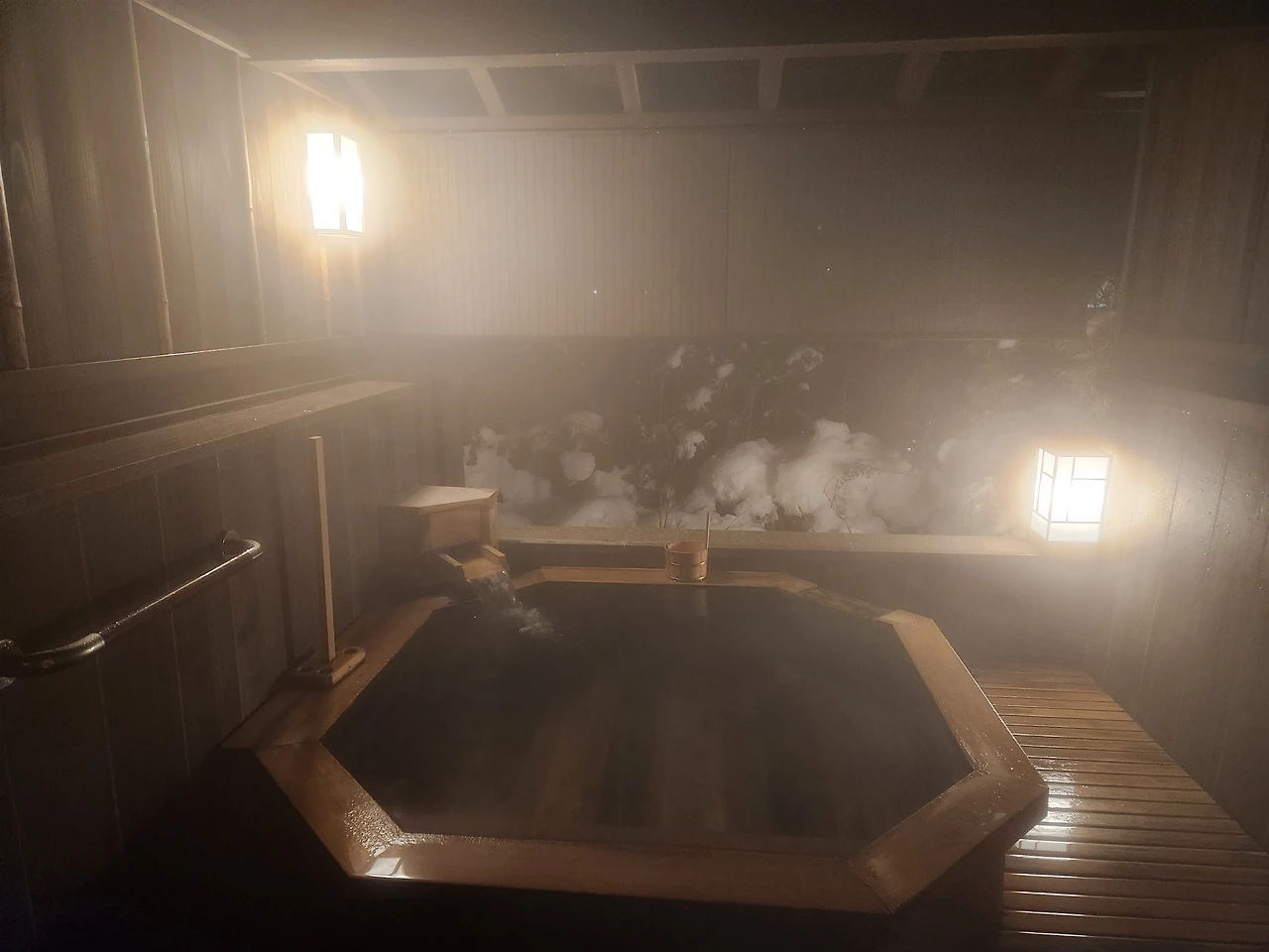 개인탕, 전세탕, 공용탕이 있는 온천이었는데 따듯한 온천물과 눈과 차가운 공기가 잘 어울려서 긴장과 여독이 풀어지는 느낌이었다.