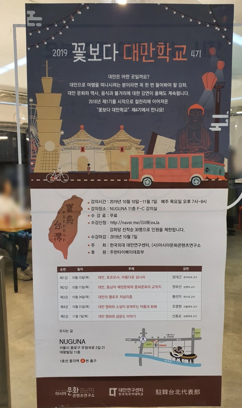 아시아문화콘텐츠 연구소에서는 매년 "꽃보다 대만 학교"라는 이름의 강연을 연다.