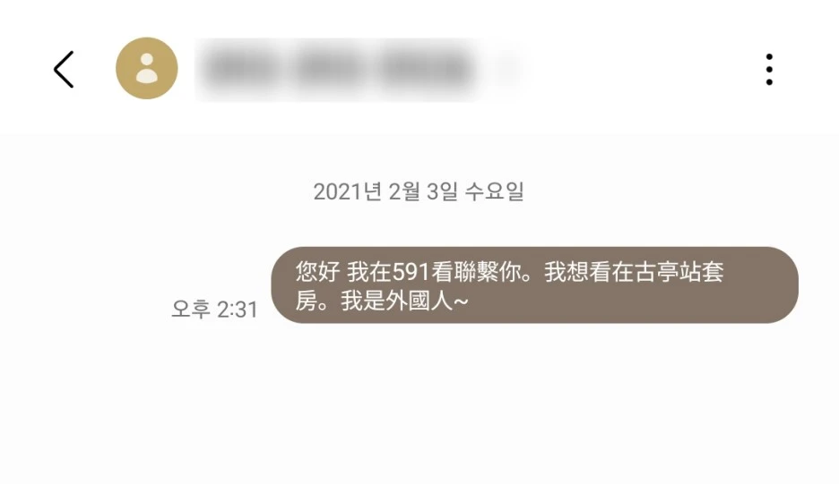 591에서 보고 연락을 드렸다 방을 보고 싶다, 나는 외국인이다~라고 하니 대체로 반응은