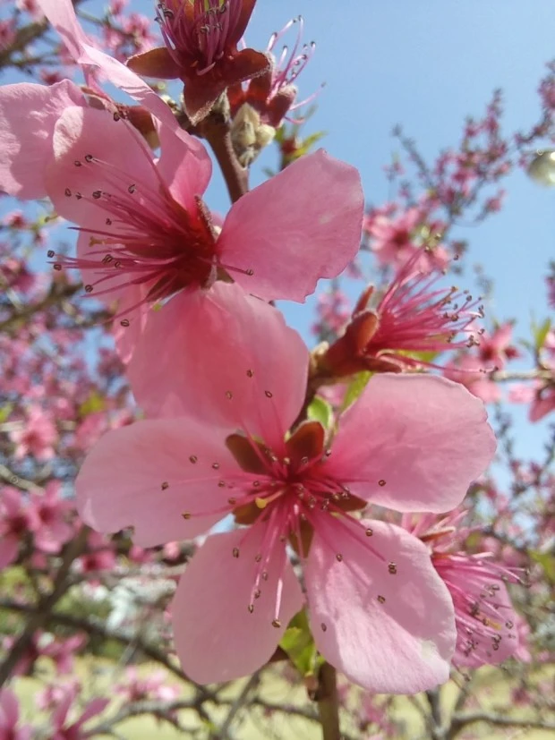 이름도 예쁜 복사꽃 이야기를 하자면 참 한도 없어요. 얽힌 이야기도 많고 전해지는 설화의 소재로, 고대 철학자들의 사상에도 빠지지 않습니다. 어마 무시한 존재감을 뽐내는 복사꽃은 우리가 여름이면 손꼽아 기다리는 말간 '복숭아'의 꽃입니다. 부모님께서 전원생활을 하시게 되면서 과실수의 꽃들이 참 어여쁘다는 것을 알게 되었습니다. 그중 저는 사과꽃이 참 예쁘더군요. 각설하고 복사꽃은 그 아름다움이 진하여 화려하고 눈에 띄게 예쁜 여인에 비유되곤 했다고 합니다. 매화가 은은한 미인이라면 복사꽃은 이목구비 화려한 전형적인 미인으로 비유했다고 해요. 그래서 조선시대 기생의 이름에 '도'자가 들어가면 그 기생이 굉장히 예쁘다는 힌트가 되기도 했답니다.
