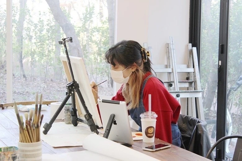 덧붙여, 제가 꽃을 배우고 있는 작업실에 화실도 함께 있어요. 곧 동양화에 도전할 예정인데, 그전에 완성한 첫 작품을 갑자기 자랑해봅니다.