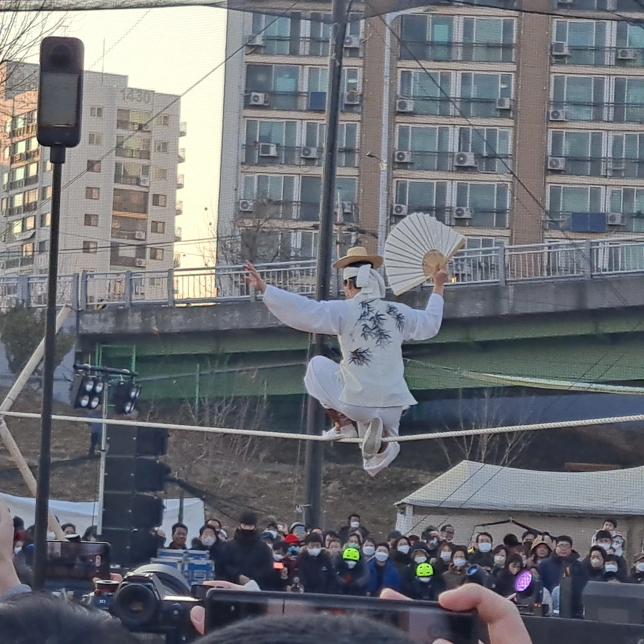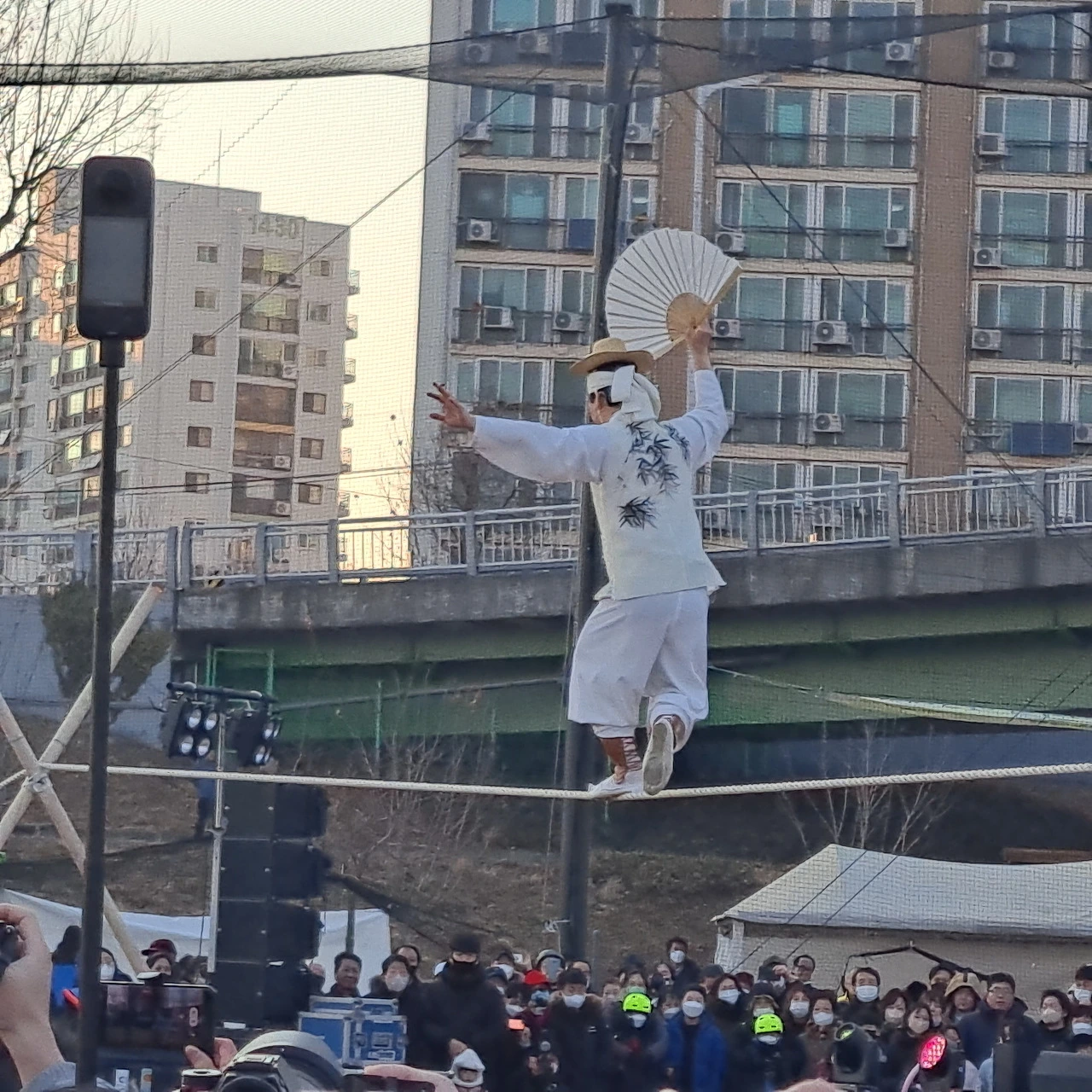 손에 땀을 쥐게 하는 줄타기 대단하다! 이번에 선풍적인 인기를 누린 줄타기. 구수한 입담도 정말 정겹다