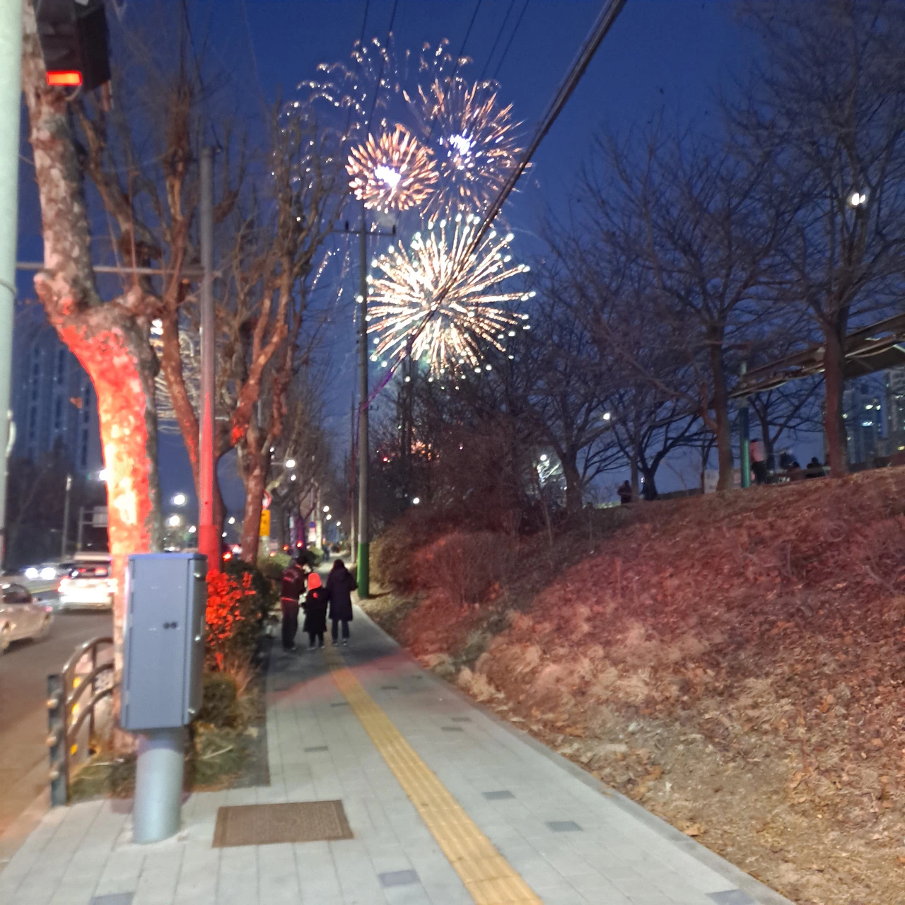 길가에서 불꽃놀이가 가깝게 터지는 것 같아서 더 신기한 경험이었다.
