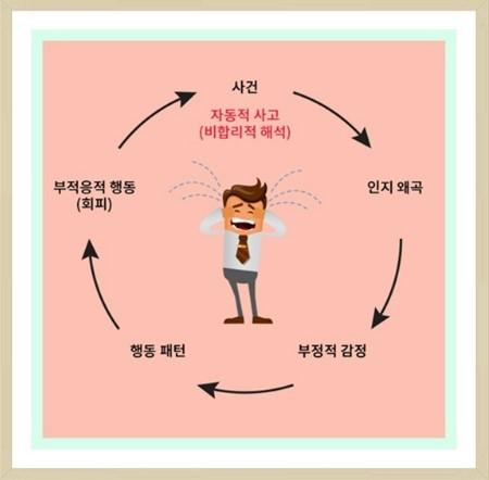 현실적 상황을 있는 그대로 받아들이니까, 마음이 편해지기 시작했다! 그동안 자동적 사고에 의하여 갖게 되는 인지적 왜곡에 대해 전체적으로 다시 재구조화하기 시작했다. 그러기 위해서는 자동적 사고를 끊고 비합리적 사고의 패턴을 바꾸어야 한다.