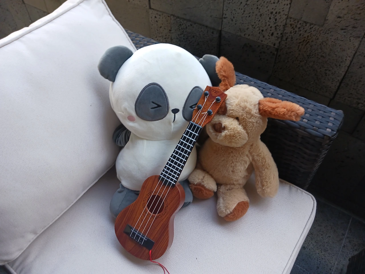 오늘은 인형들과 함께 연주하면서 저를 위한 음악치료를 하고 있습니다