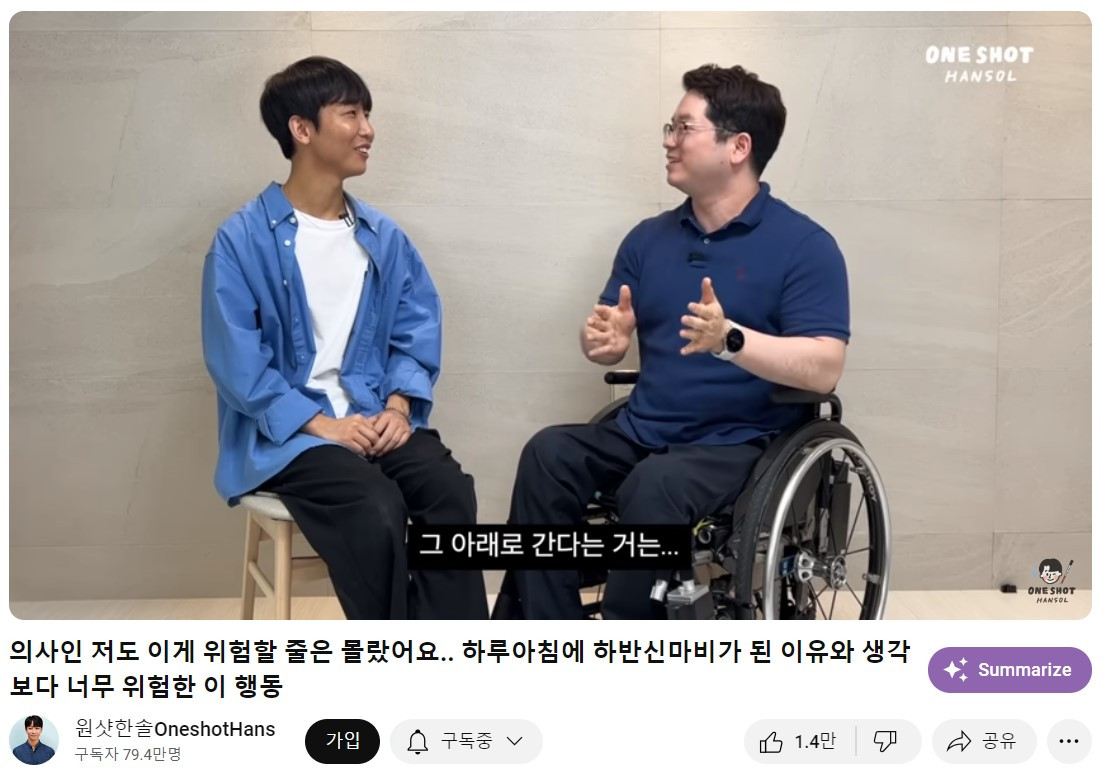의사가 되어 출근하다가 다음날 하반신마비 환자가 되어 입원하였다는 유튜브 출연자의 말을 듣다!