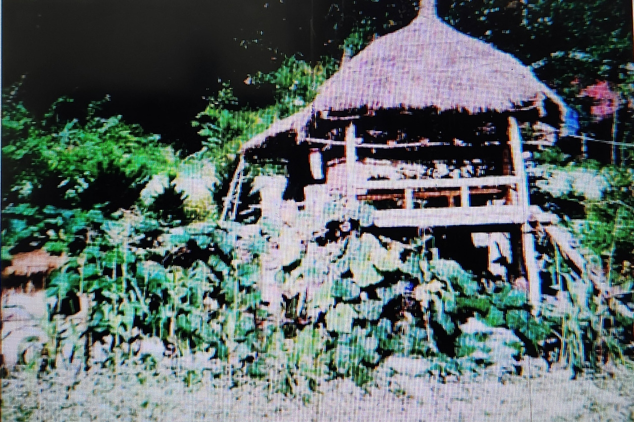 원두막 그늘 아래 홀로 앉아
