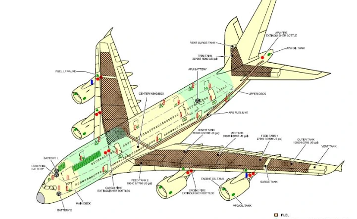 최대 이륙 중량이 570 톤인 A380 항공기를 공중에서 16시간 이상 운항을 하려면 약 254 톤의 연료가 탱크에 실리게 된다.