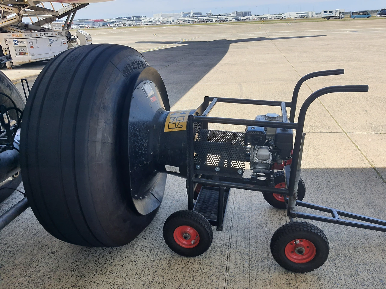 항공기가 착륙을 하면서 타이어에 과도한 브레이크 작동으로 타이어 온도가 너무 높아지면 화재와 심각한 사고로 이어질 수 있다. 그래서 반드시 쿨링이 필요하고 장차 된 쿨링팬이 없다면 추가적으로 이동식 브레이크 쿨링팬을 요청해서 냉각을 하게 된다.