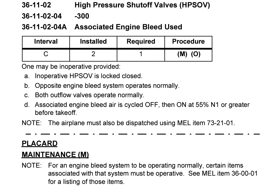 HPSOV 결함 관련해서 적용할 수 있는 MEL 근거는 36-11-02-02A 와 36-11-02-02B 절차가 있다.
