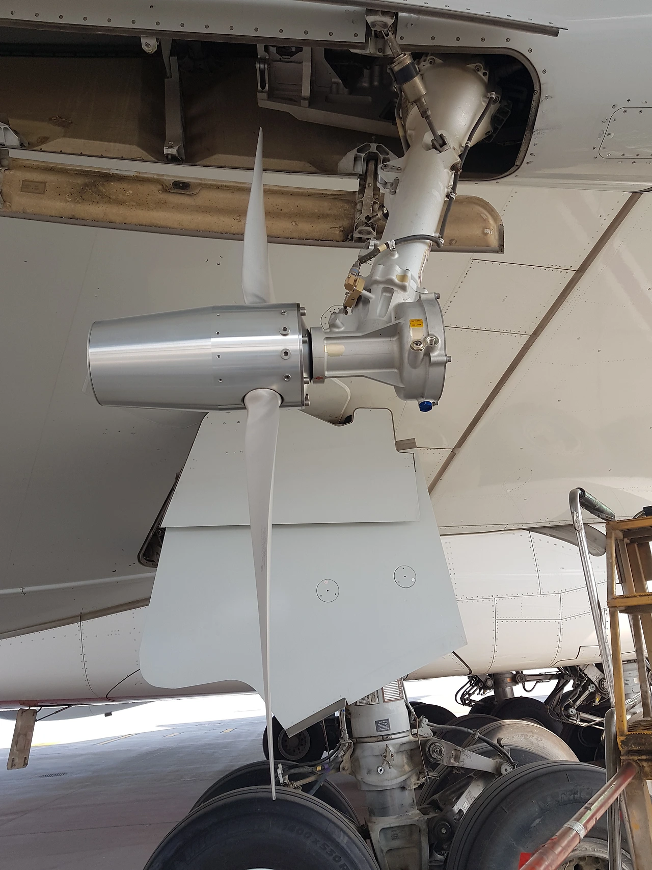 나와 내 팀의 메카닉은 부지런히 작업 준비를 해서 항공기로 갔다. 오늘은 우선 (RAT: Ram Air Turbine)를 수동으로 펼쳐 놓고 오일을 전체 drain을 하고 얼마나 양이되는지, 오일 시스템이 오염은 되지 않았는지, 그리고 마지막으로 오일에 수분이 포함되어 있지는 않은 지를 점검을 마쳤다. 그리고 마지막으로 RAT 후면에 유압 장비를 연결하여 RAT 시스템의 작동 점검을 마쳤다. 다행히 모든 게 정상이다.
