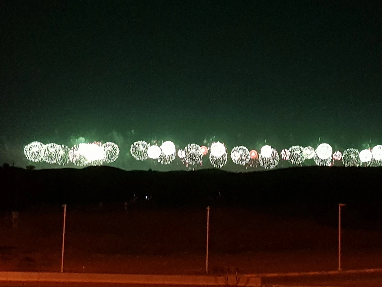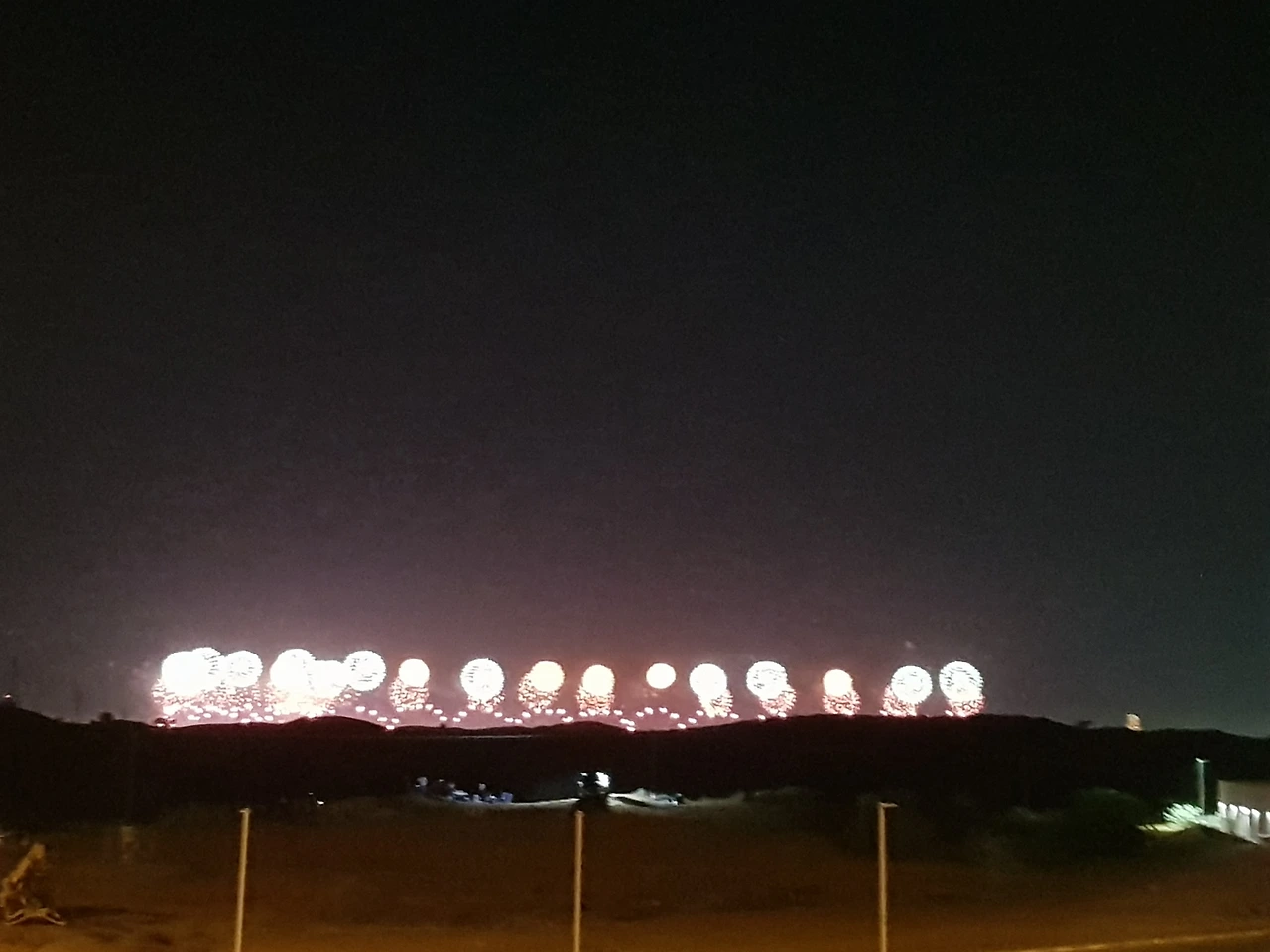 새해가 되기 3분 전에 차에서 나와 언덕의 높은 곳에 올랐다. 드디어 12시 정각이 되자 공중에 드론으로 'Happy New Year'이란 글씨가 보이고 드디어 불꽃놀이가 시작되었다.