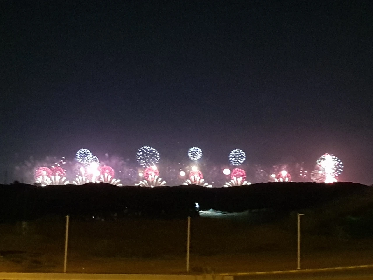 우리는 멀리서 구경을 했기에 거대한 규모의 모든 광경을 한눈에 볼 수가 있었다. 불꽃놀이가 끝나자마자 모든 차들이 서서히 교통 체증을 피하려 움직였다. 우리도 차를 돌려 가장 외곽에 위치한 에미레이트 로드를 타고 집으로 차를 몰았다.