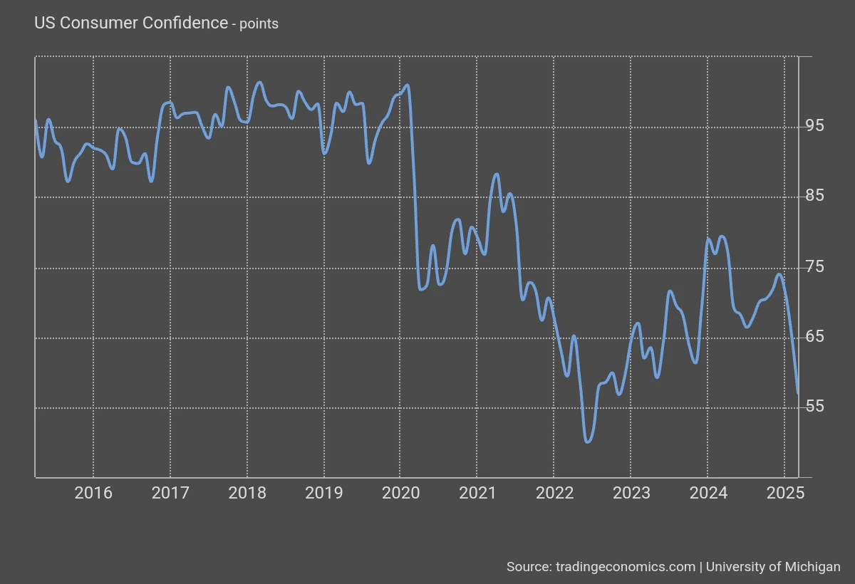 고용 불안, 인플레이션 피로감, 무역 정책에 따른 경제 불확실성 등으로 인해