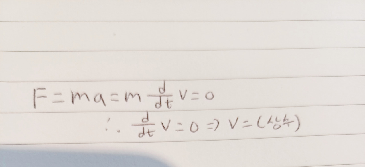 그래서 F=m * d/dt v=0인 경우에 F도 0이고 ma도 0일 때에 움직이던 물체는 계속 움직이려고 하고 정지한 물체는 계속 정지하려고 하는 관성의 법칙이 이때 성립된다.