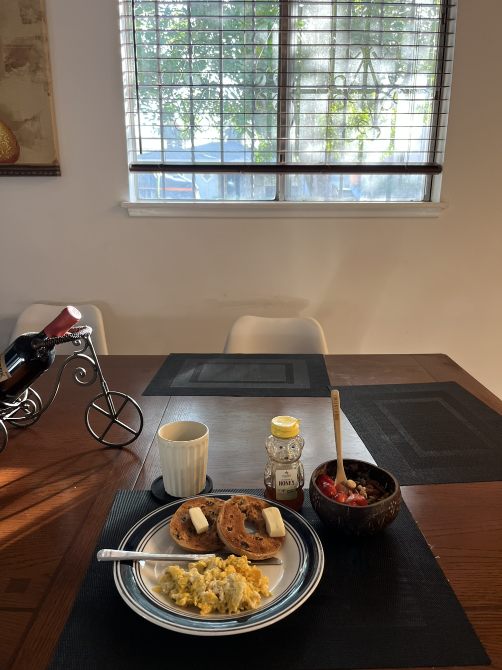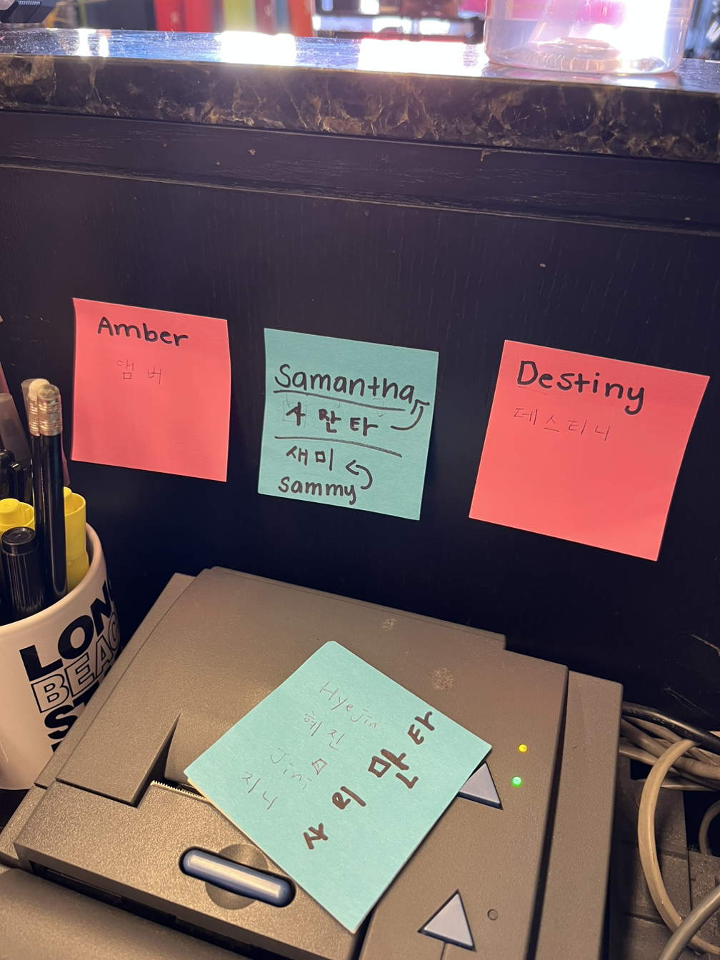 소소한 즐거움들이 모여 하루를 행복하게 한다. 일하러 가기 전 [여유]롭게 만들어 먹는 아침. 함께 일하는 친구에게 만들어 온 점심을 맛보라 나누어 주는 즐거움. 친구의 이름을 어떻게 한국어로 쓰는 지도 물어보기에 알려준 날.
