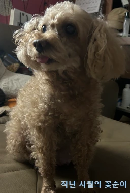 예쁘고 귀엽게 생겨서 나가면 이목을 집중시키는 둘째 강아지도 있지만, 어쩐지 나는 나이가 들어 털의 윤기가 사라지고 얼굴도 초췌한 꽃순이가 ‘내 개’라는 의식이 강했다. 다만, ‘내 것, 내 사람’에게 더 친절하고 다정한 사람이 못 되었다. 사랑이 넘치는 개와 매정한 나, 늘 함께 있고 싶어 하는 개와 밀착 상황을 오래 견디지 못하는 사람 사이의 간극을 메우지 못했다.