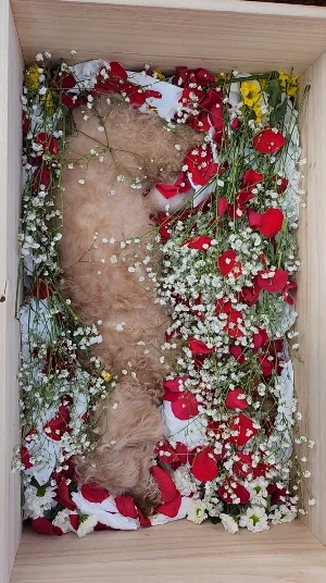 여전히 마음이 천 갈래, 만 갈래 찢어지고, 큰 바위를 삼킨 듯 숨이 답답하지만, 우리 아기, 우리 꽃순이의 마지막 모습을 생각하면 너무 예뻐서, 살아있을 때처럼 사랑스러워서, 아프지도 않고 평화로워 보여서 위로가 된다.