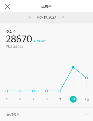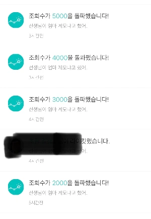 그렇게 1년이 넘는 동안 브런치가 브런치스토리로 이름을 바꾸고 입구가 새롭게 단장을 했지만 내 글의 좋아요수는 10이 안되는 것이 많고 15를 넘는것이 몇 없었다. 그런데 요즘 좋아요수 20을 넘는 글들이 하나 둘 생겼다. 매거진만 만들어 올리는 글이 뭔가 허전한 느낌이 들어 브런치북을 만들고 싶다는 생각도 했다. 하지만 어떻게 만들까를 생각하면 아이디어의 부족이나 생각의 결핍등등의 이유로 선뜻 용기를 내지 못하고 매거진을 잘 만들고 난 후 내년쯤 도전을 해볼까하는 생각으로 매거진을 정리하였다. 많은 사람을 만난 나의 경험으로 글을 작성하자라는 생각으로 예전의 기억들을 하나씩 꺼내어 정리하기 시작했다. 그렇게 "나니야와 별별 사람들"이라는 매거진을 만들어 글을 시작한 이래로 5번째 글에 좋아요수가 20이되었다. 참 기뻤다. 이렇게 내가 모르는 사람들이 나의 글을 읽고 좋아요를 눌러준다는 것이 내가 작가들의 글을 읽고 좋아요를 누르던 기분을 기억나게하여 기분이 좋았다. 그런데 9일 밤에 올린 여섯번째 글이 오늘 10일, 좋아요수가 20이 되더니 갑자기 조회수가 '1000을 넘었습니다'의 메시지가 떴다. 이게 뭔가하는 생각이 들었다. 조회수에 대한 알림은 처음 받아보는 것이다. 그러더니 2000이라는 알림과 또 다시 3000, 4000이라는 알림이 떴다.