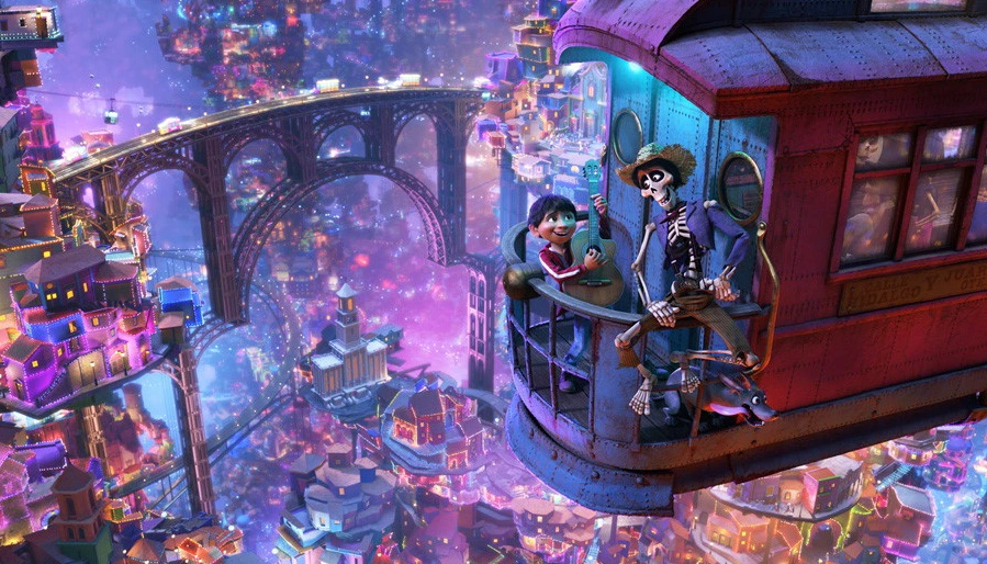 애니메이션의 특성 상, 비현실적인 이야기이다. 산 자가 죽은 자의 세상으로 떨어진다니. 하지만 나는 영화 <코코>가 비현실적인 모습 속에서도 현실적인 부분을 많이 신경 썼다고 생각한다. 애니메이션 속에서 산 자와 죽은 자는 해골의 유무로 구분할 수 있다. 하지만 그 둘은 같은 공간 속 존재한다. 그 둘이 같은 공간 속 존재해서일까. 나는 죽은 자와 산 자를 굳이 구별하고 싶지 않았다. 해골의 모습이 멕시코의 축제처럼 산 자가 해골 분장을 해 함께 즐기려고 하는 것이 아닐까 싶었다. 영화 속 미구엘 또한 죽은 자로 보이기 위해 해골 분장을 한다. 죽은 자의 해골 또한 실제 멕시코 축제에 흔히 보이는 해골들과 유사하게 디자인되었다. 이 때문일까. 나는 산 자와 죽은 자를 구별하지 않는다는 멕시코의 축제의 모습을 그대로 구현해 놓은 것만 같았다.