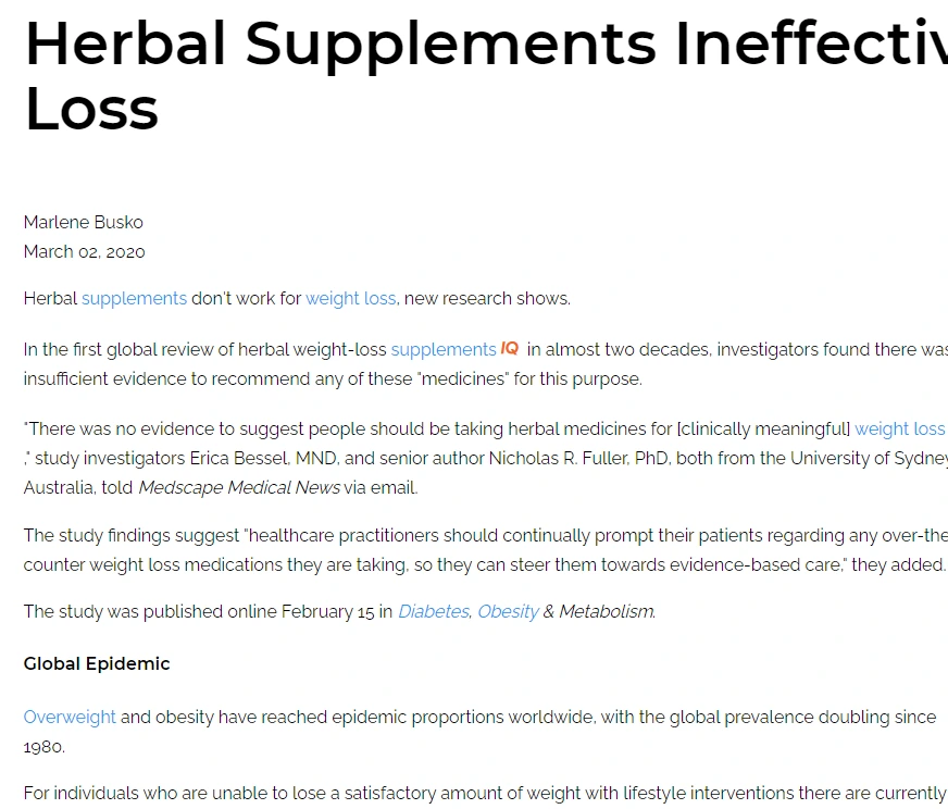 (출처 Medscape : Herbal Supplements Ineffective for Weight Loss)