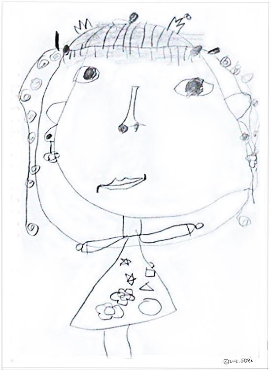 “녀석이 자기 자화상 그린다고 나름 기교를 많이 부렸어요. 여기 옷에 무늬를 넣은 것하고 머리 장식하고... 피카소도 이렇게 못 그려요.”