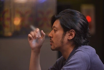 거뭇한 손을 옷에 쓱쓱 닦아내며