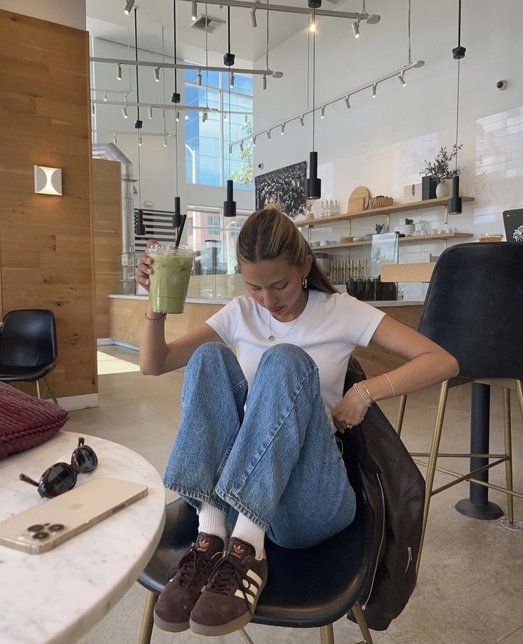 먼저 상의와 하의는 흰색 반팔 티셔츠와 청바지로 클래식한 무드를 가져주신 다음,