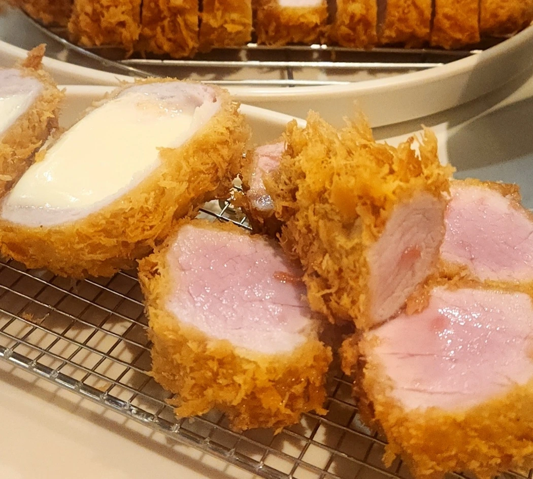 겉은 기름기를 머금고 갓 튀겨 바삭하고 까슬까슬한 빵가루에 입천장이 까지기도 하지만 한 입 베어 물었을 때의 바다 빛깔처럼 고운 육즙이 입 안에 사르르 스며들어 오감을 자극한다. 겉바속촉, 겉은 바삭하고 속은 촉촉하다.