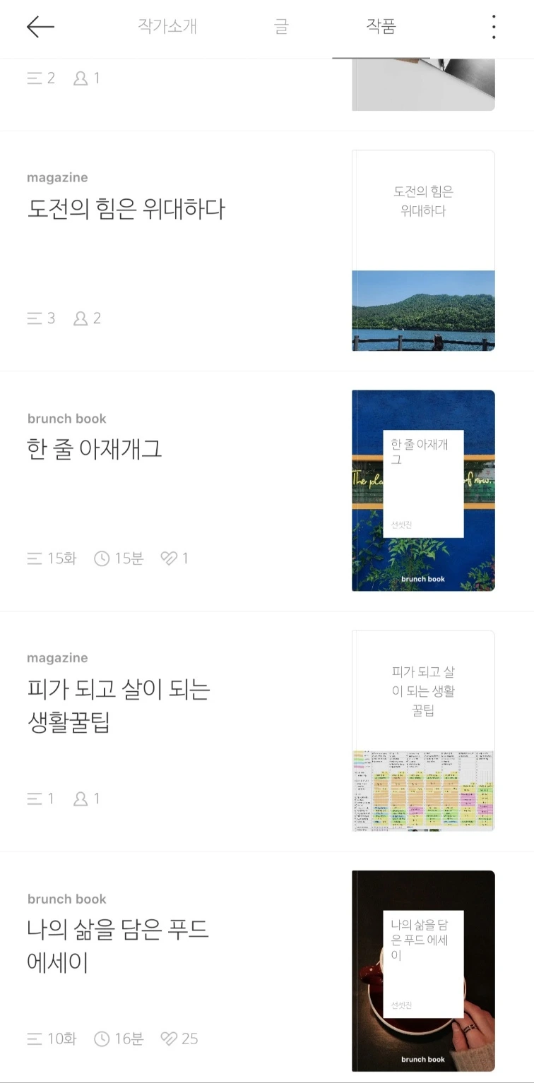 그런 생각이 들면서 나는 푸드에세이 말고도 다른 여러가지 주제들에 대하여 글을 쓰고 매거진을 작성하기도 하고 브런치북을 발행하고 있다.