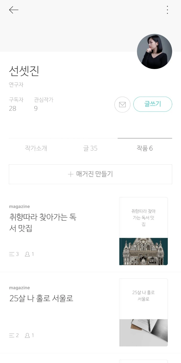 작가가 되고 나서 다양하게 자신만의 이야기를 풀어 나가고 있었고 관심 장르를 통해 사람들과 소통하고 있었다.
