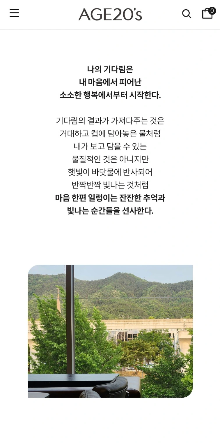 그렇기 때문에 에세이 작성 제안을 받아들였고 AGE 20's 브랜드의 인스타그램과 홈페이지 커뮤니티에 나의 에세이가 발행되는 기회를 가졌다.