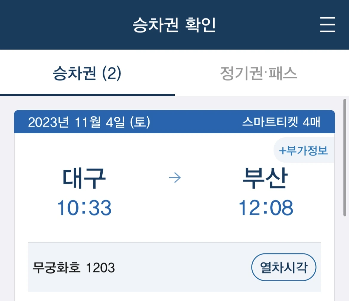 그렇게 대구-부산을 오고 가는 왕복 기차표, 숙소, 불꽃놀이를 맞이할 저녁 술집을 예약한 채 대망의 11월 4일이 되었다.