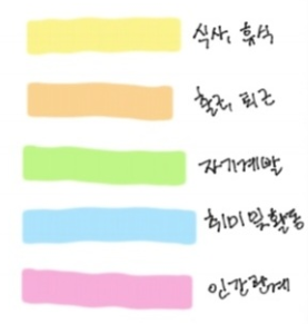 할일에 대한 목록은 자신에 맞게 자유롭게 정하시면 되고 할일마다 색상을 지정하면 된다.