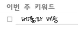 이번주에 나를 중점적으로 생각하고 있는 키워드나 일주일동안 어떤 키워드를 가지고 보낼 것인지 적어보도록 한다. 나는 '베풂과 배움'을 키워드로 정했다.
