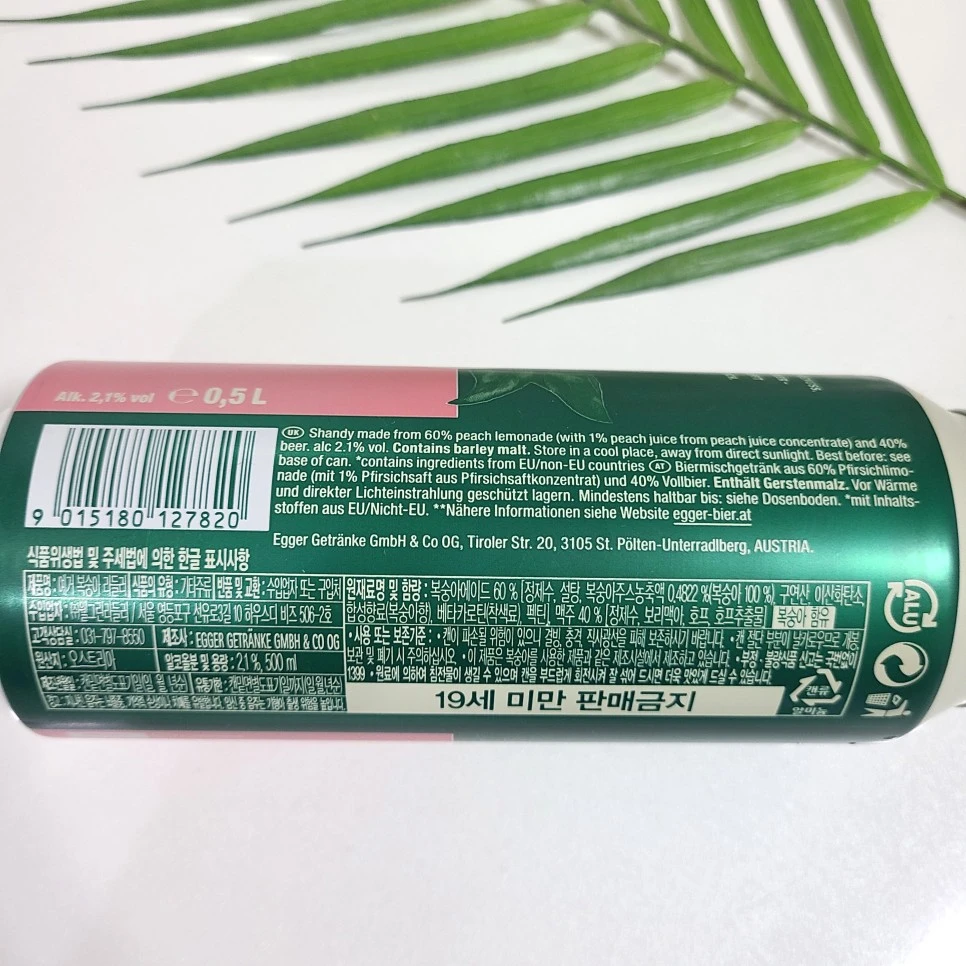 알콜 함유량은 예거 라들러 복숭아의 경우 2.1% 로 거의 음료수 2% 복숭아 맛과 흡사하다.