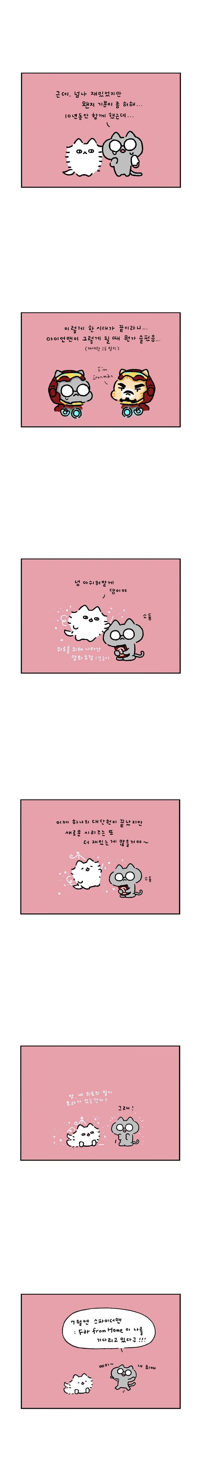 <냥만연애툰>을 그리고 있습니다. 콩깍지 씌인 남자 댕이와 까칠한 여자 냐미의 잔망스러운 연애 웹툰입니다^ ^ 다음 웹툰리그와 네이버 도전만화에서 도전 중입니다!