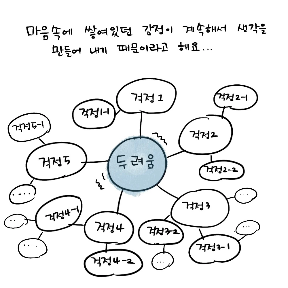 깊은 곳에 쌓여있는 감정이 끊임없이 생각, 즉 고민 걱정을 만들어내기 때문이죠.