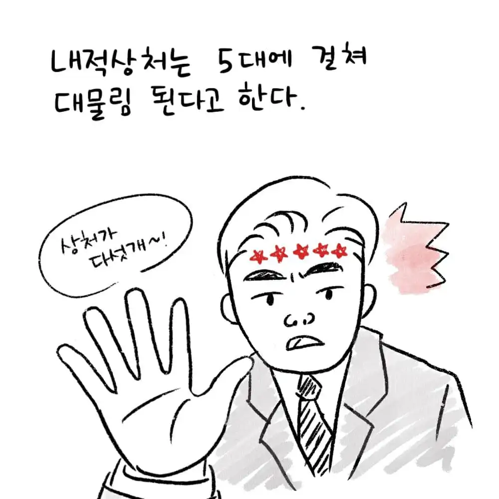 본인의 성장 과정을 답습하며 사랑하는 내 아이에게도 같은 상처를 주게 되는 거랍니다.