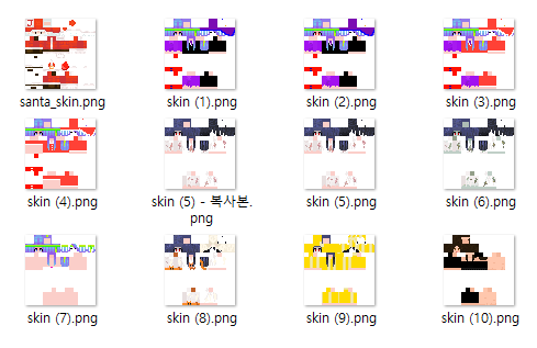 스킨을 다운로드할 수도 있다. 검색창에 [마크 스킨 다운로드]라고 검색해보자. 위에 이미지 중에 직접 그린 것도 있지만 다운로드한 것도 있다. 다운로드한 것이 엄마 눈에는 더 이쁜데 아이는 제작하는 것을 더 좋아했다. 남의 만들어준 것보다 자기 손으로 만든 것의 가치를 아는 것이다.