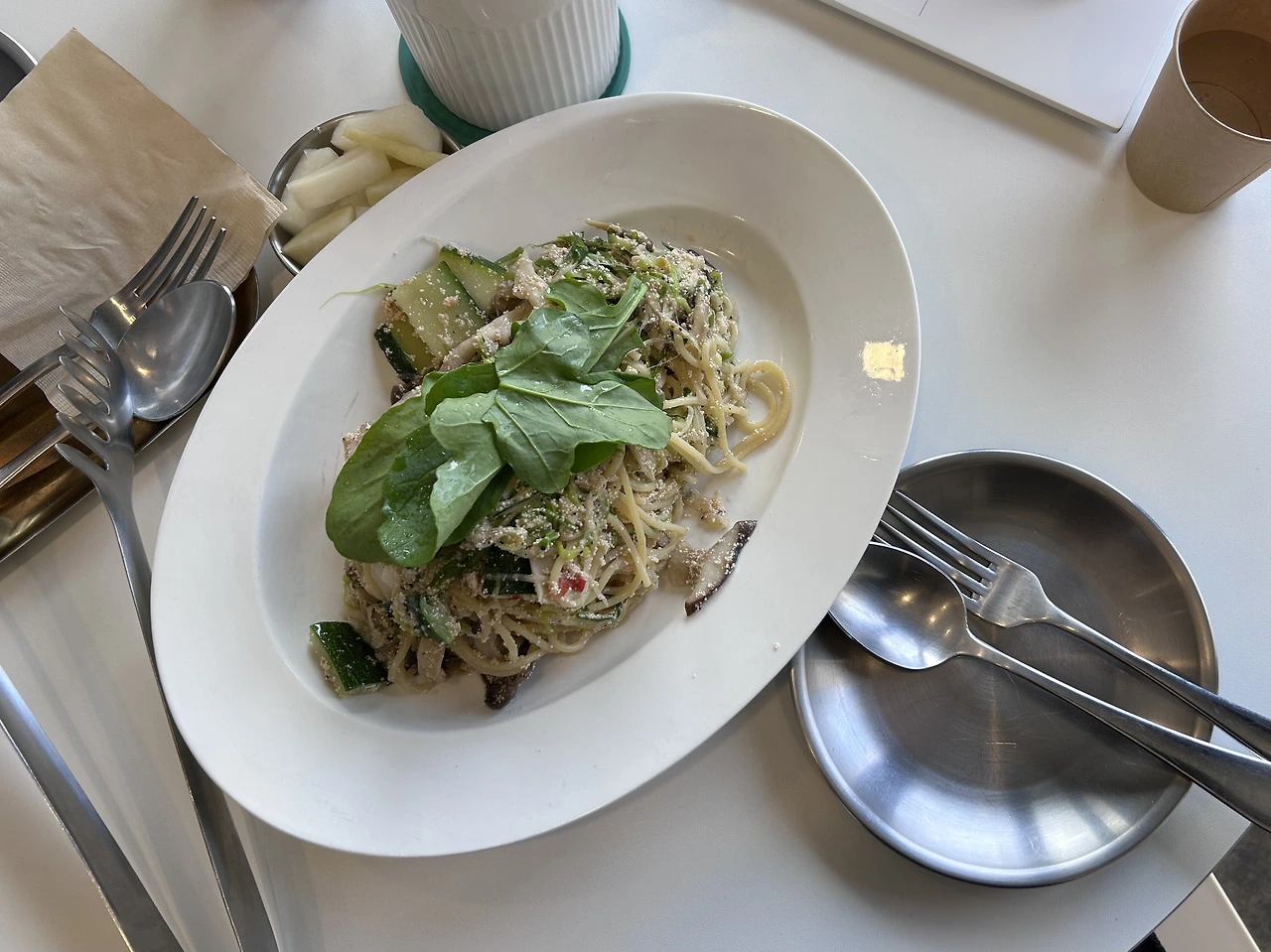 나의 공간이 아니라 어색하게 말려진 앞머리와 함께 브런치 카페에 가서 완전 취향저격의 대파명란 파스타도 먹고