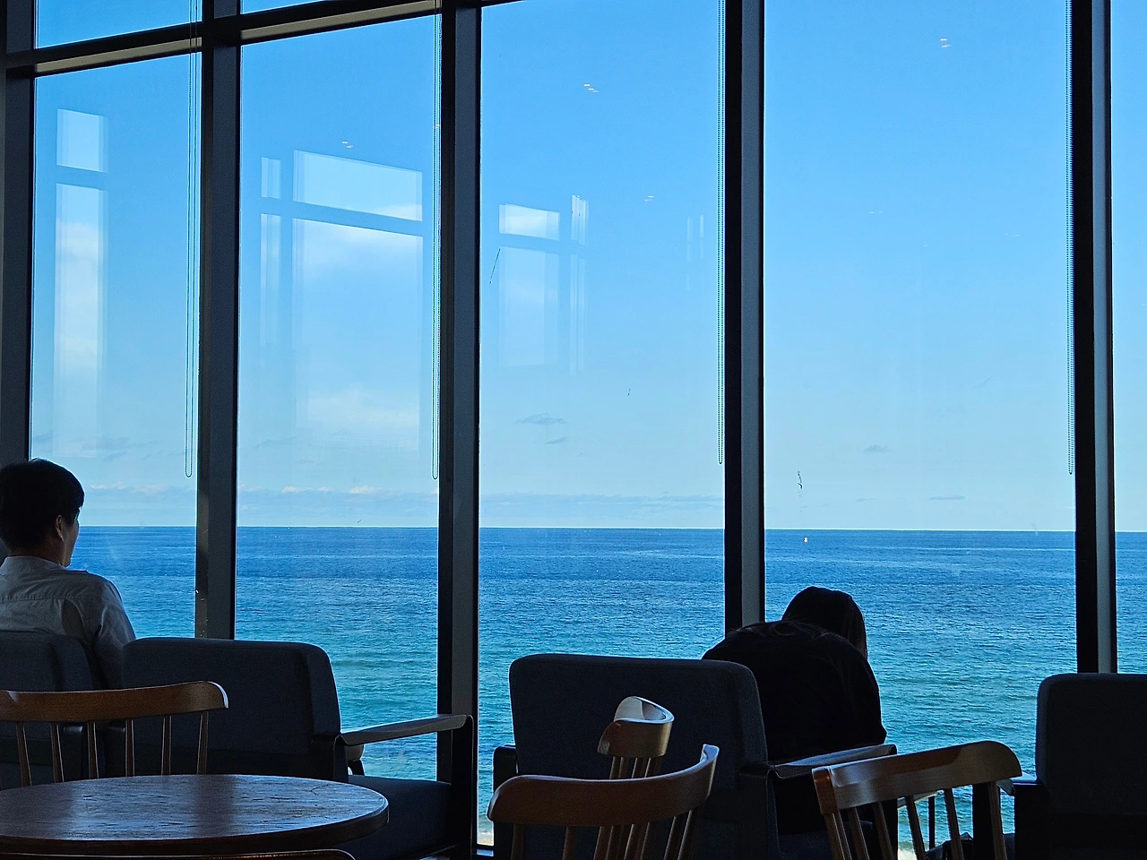 딱딱한 의자에 앉아