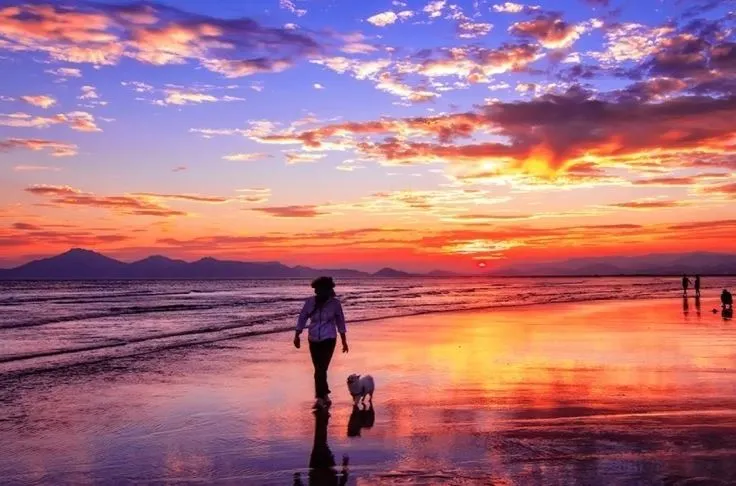 해지는 시각이 오후 6시대를 지나는 이 무렵의 노을은 색깔이 다양하다. 노을이 붉게 보이는 것은 저녁의 햇빛이 대기를 비스듬히 통과해오기 때문이다. 즉, 이때는 한낮보다 햇빛이 공기층을 통과하는 거리가 길어지므로 주로 적색계통의 빛깔이 산란되어서 우리 눈에 들어오기 때문이다.