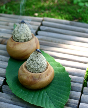 6. 타고 있는 선향으로 쑥봉 끝에 살짝 불을 붙인다.