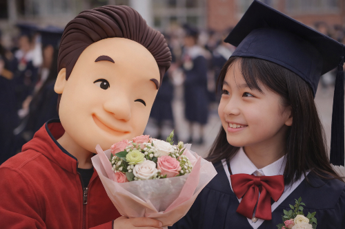 꽃다발을 들고 학교를 오르내리던 시간들.