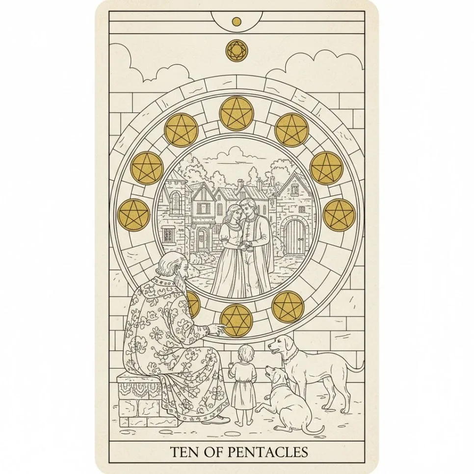 Ten of Pentacles (펜타클 10번), 이 카드는 타로에서 '물질적 완성'의 끝판왕이라 불립니다.